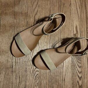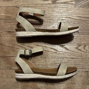Comfy UNR8ED Tacoma sandals with ankle strap, new in box, never worn, light camel color, size 9M