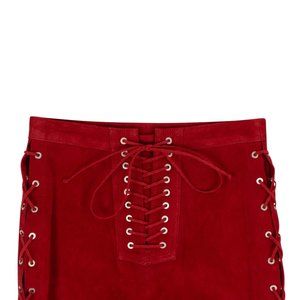 UNRAVEL PROJECT Red Suede Side Lace-Up Mini Skirt Size 2 US 38 IT $1540