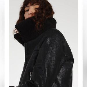 SILHOUETTE WITH VEGAN LEATHER AND FAUX SHEARLING