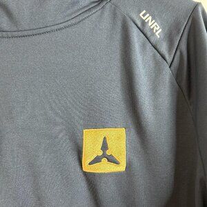 Brand markings: UNRL print at shoulder; yellow chest logo patch with three-blade emblem on left chest