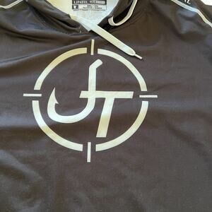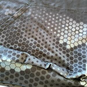 UNRL Silk Series men’s size XXL drawstring, hooded pullover. Made of 88% polyester and 12% spandex. This fabric offers comfort and added stretch and is silky smooth. Black with shades of gray and black octagon print on lower portion of jacket.. has one large front pocket. Jacket is lined for added warmth. Rib-knit wristbands and waistband. Backside of the jacket features a large fish and BE LEGENDARY. Very nice jacket! Like new condition.