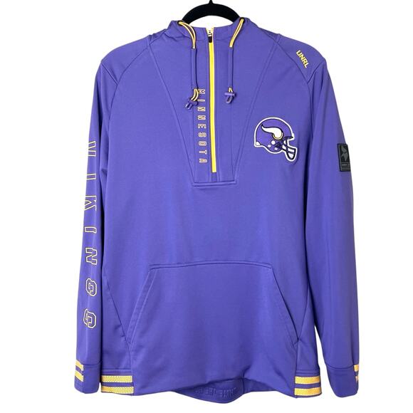 UNRL Vikings Hoodie, Minnesota Vikings Pullover, UNRL Crossover Hoodie, Vikings No. 5, NFL Hoodie Men’s Medium, Purple Football Hoodie, UNRL Performance Wear, Vikings Fan Gear, Rare UNRL Vikings Collab, Game Day Apparel