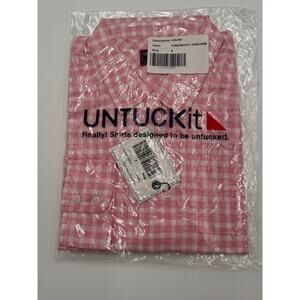 UNTUCKIT Calina Gingham Button Up Long Sleeve Shirt Cotton Pink White Size 8