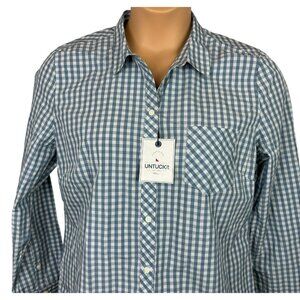 UNTUCKIT Crispo Blue Check Shirt Button Front Gingham Blouse