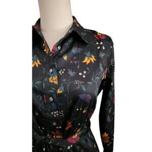 UNTUCKIT Ellery Button Up Shirt Long Sleeve Dress Women 2 Floral Belted Cotton