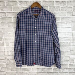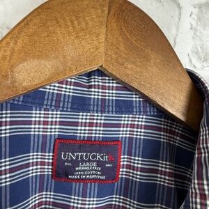 UNTUCKit Alte Reben Wrinkle Free Navy Plaid Casual Button Up Shirt Mens LARGE