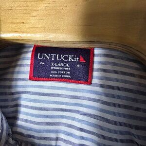 UNTUCKit Button Down Dress Shirt XL Men's White Blue Gray Striped Long Sleeve