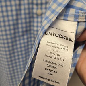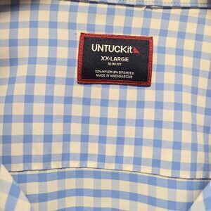 UNTUCKit Men's XX-Large long sleeve button down shirt in excellent pre-owned condition. This shirt is light blue and a regular fit. It is made of Nylon and Spandex so it has some stretch to it. Please see all photos for measurements and condition. If you have any questions please feel free to reach out to us. Thank you.