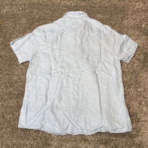 UNTUCKit Button Down Shirt Mens XXL Blue Slim Fit Linen Blend Short Sleeve