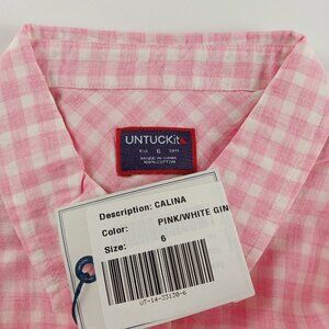 UNTUCKit Calina Button Front Shirt Women's Size 6 Pink White Gingham Cotton