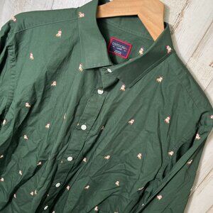 UNTUCKit Christmas Green Dog Button Up Long Sleeve Shirt Mens Size Large