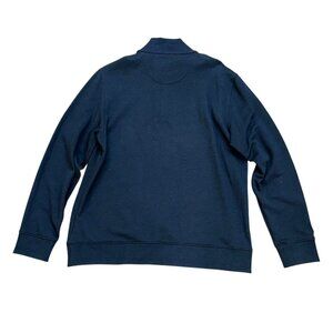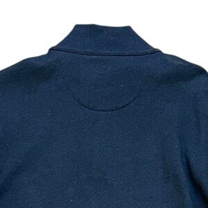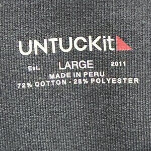 UNTUCKit Corral Navy Quarter Zip Mock Neck Sweatshirt Large 40297 Winter Office. It is made of 72% Cotton, 28% Polyester. This sweater measures Underarm to Underarm 22", Length 28". This sweatshirt is in excellent, used condition! There are no rips, tears, stains or damage. Ships from a Smoke Free Home. Any questions, please ask. All reasonable offers welcome.