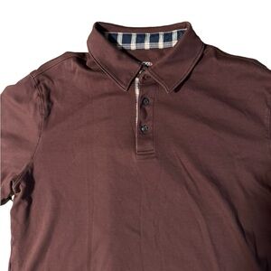 Upgrade your wardrobe with this stylish UNTUCKit Damaschino Polo Shirt. This men's shirt is made from 100% cotton fabric and features a solid pattern with a brown color tone. The shirt has a collared neckline with a spread collar style and a button closure. It is designed for a regular fit and comes in size L with long sleeves. The contrast placket and button accents add a touch of modern and preppy style to the classic design. This polo shirt is perfect for all seasons and occasions, including travel, casual outings, workwear, and business meetings. It is easy to care for and has stretch for comfortable wear. The shirt is suitable for walking, rugby, golf, and other activities. Get your hands on this UNTUCKit polo shirt and elevate your style game.