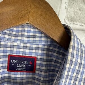 UNTUCKit Durif Wrinkle Free Blue Textured Plaid LS Button Up Shirt Mens XL