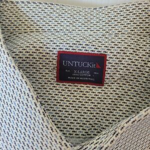UNTUCKit Fish Print Shirt XL Blue White Cotton Short Sleeve Casual Button Up