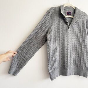 UNTUCKit Gray Cashmere Cable Knit 1/4 Button Pullover Sweater La Frenz medium M