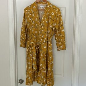 UNTUCKit Jane Shirt Dress Womens 12 Yellow Floral Tie Tiered V-Neck Long Sleeve
