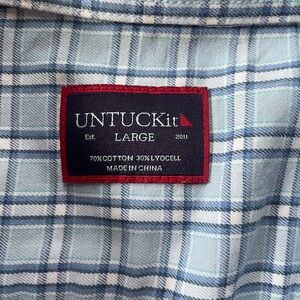 Light blue plaid shirt by UNTUCKit. Soft cotton blend. Casual and stylish. Excellent condition, no holes or stains, men’s size large!
