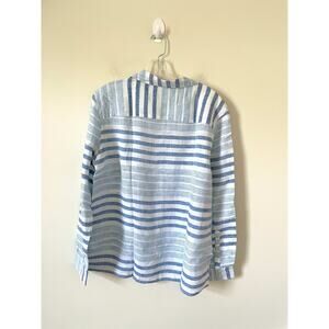 UNTUCKit Linen Cotton Striped Button Down Blouse Blue White Size 14 NEW