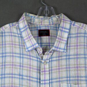 UNTUCKit Linen Shirt Mens XL Blue Plaid Matisco Button Down Short Sleeve Preppy