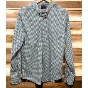 UNTUCKit Long Sleeve Shirt Blue Yellow Gingham Check Slim Fit Men's Size Large