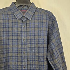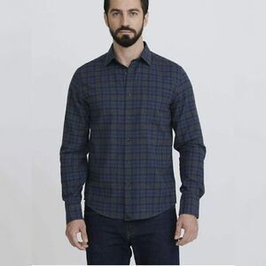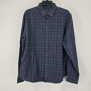 UNTUCKit Men Macari Blue Plaid Light Flannel Long Sleeve Button Up Shirt Large