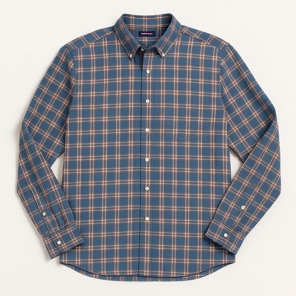 This UNTUCKit men’s 2XL shirt features a clean plaid pattern in blue, brown, and white. Classic button-down styling with a tailored length designed to look sharp when worn untucked. Lightweight, comfortable fabric ideal for everyday wear, office casual, or weekend activities.