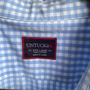 UNTUCKit Mens 3XL XXL Button Down Casual Shirt Blue Gingham Plaid Check Cotton