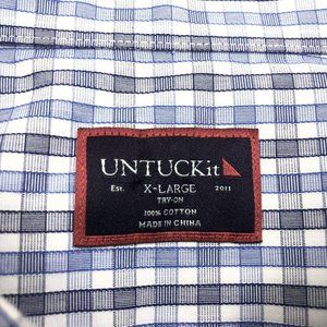 UNTUCKit Men's Blue Plaid Gingham Long Sleeve Button Front Shirt Size XL