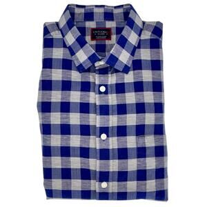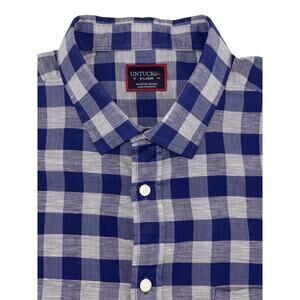 UNTUCKit Men's Button Up Shirt Blue Plaid XL Long Sleeve Cotton Linen Blend EUC
