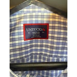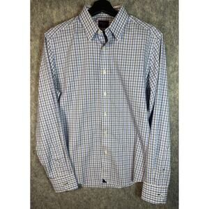 UNTUCKit Mens Durif Wrinkle Free Long Sleeve White Blue Check Button Up - Medium