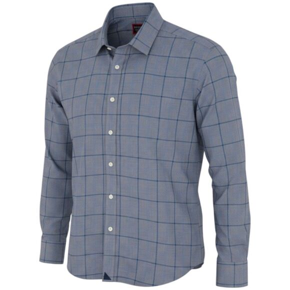 UNTUCKit Men's Ortman Wrinkle Free Relaxed Long Sleeve Shirt Gray/Blue Plaid XL