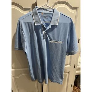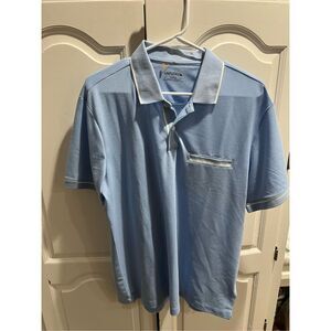 UNTUCKit Men’s Polo Shirt Large Blue White Trim Performance Stretch Golf Casual