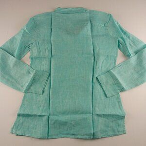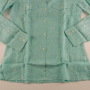UNTUCKit Monthelie Button Front Shirt Women's Size 4 Relaxed Fit Blue Linen
