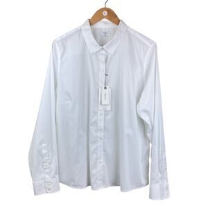 UNTUCKit NWT Bella White Button Down Long Sleeve Collared Cuffs Office Blouse