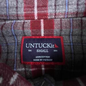 UNTUCKit Plaid Flannel Shirt Mens Size Small Gray Maroon Button Up Long Sleeve