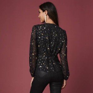 Need something extra special, but still comfortable? Look no further than this sheer, lightweight style featuring a starry pattern, flattering neckline, and comfortable sleeves. It’s sure to be your go-to holiday style that’s designed to have you feeling great and looking gorgeous all day and night.