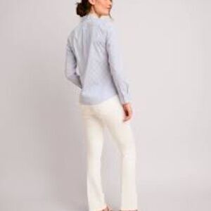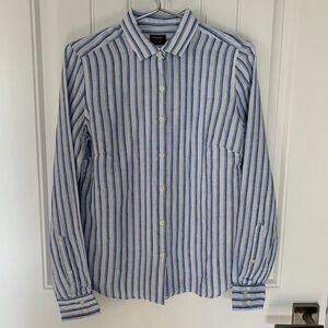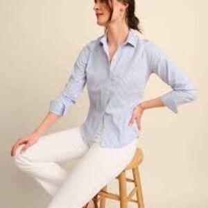 UNTUCKit Women's 100% Linen Button Up Shirt Blue and White Striped Top. Linen shirts are stylish essentials for every woman's wardrobe. UNTUCKit shirt's slimming darts give it a precise fit, and its linen fabric gives you added comfort. Plus, our Perfect Placement Buttons ensure your shirt always stays closed—with no awkward gaps.