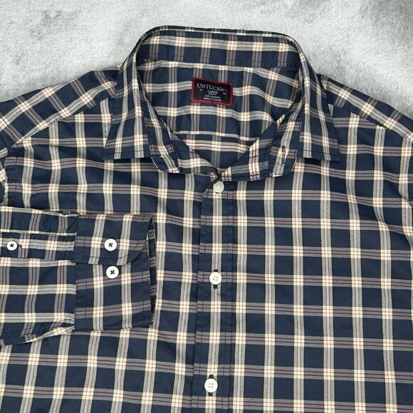 UNTUCKit Shirt Mens Large Blue Tan Red Plaid Lightweight Button Up Slim Fit L
