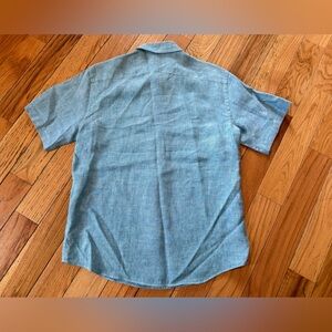 UNTUCKit short sleeved, collared, button down shirt, men’s size medium/slim fit. Light blue. 100% Linen. EUC. No rips, holes, stains or odors. Please see photos for item details/dimensions. Some photos may appear different in color due to lighting. Ships from smoke-free home.