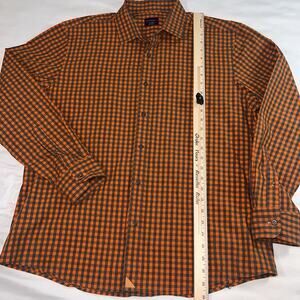 UNTUCKit Shirt Mens Size XL Blue Orange Gingham Button Long Sleeve Preppy Casual