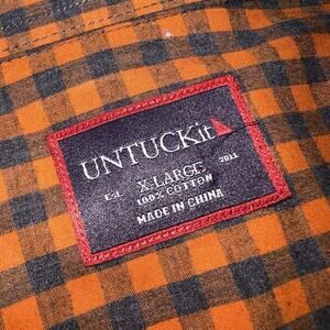 UNTUCKit Shirt Mens Size XL Blue Orange Gingham Button Long Sleeve Preppy Casual.
