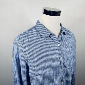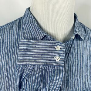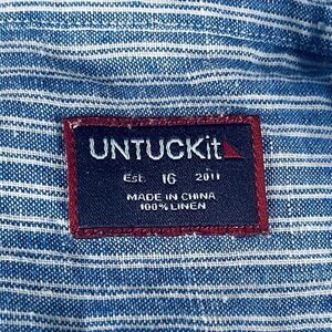 UNTUCKit Size 16 Womens 100% Linen Shirt Blue White Striped Casual Button Front