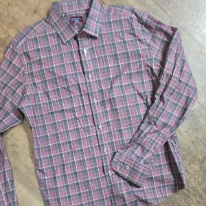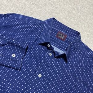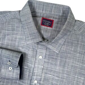 UNTUCKit Slim Fit Navy Blue Striped Long Sleeve Button Shirt - Large