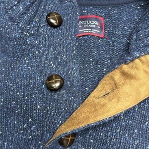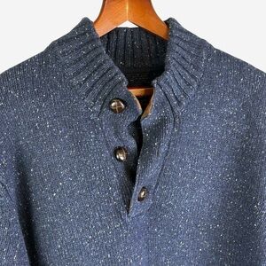 UNTUCKit Vangone Sweater XL Pullover Button Neck Lambswool Speckled Navy