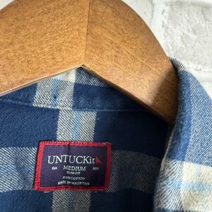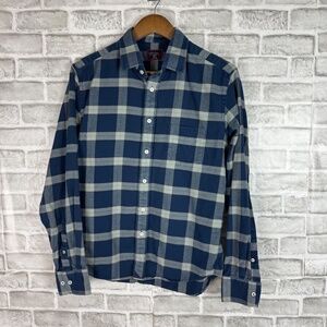 UNTUCKit Vougeot Navy & Gray Plaid Button up Flannel Shirt Mens Medium Slim Fit