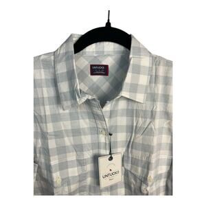 UNTUCKit Women's Button Down Santa Marzi Plaid Long Sleeve Shirt Blue White 4