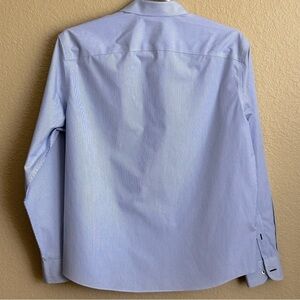 Good condition. Men’s UNTUCKit wrinkle free, striped, long sleeve, button down shirt. This shirt is a timeless addition to any wardrobe, offering a sleek and professional look. Crafted from high-quality materials, this long-sleeve shirt features a crisp finish that ensures a polished appearance. Its versatile blue and white hue makes it perfect for both business and formal occasions, embodying the brand's commitment to style and comfort.