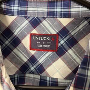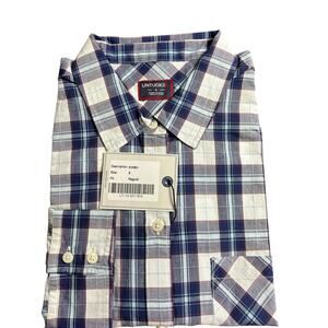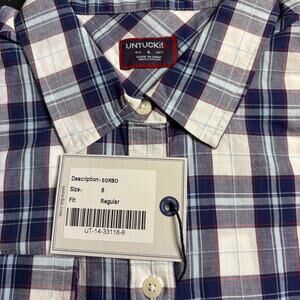 UNTUCKit checkered Button Down Women’s Shirt Size 8 NWT Navy White Classic Staple.