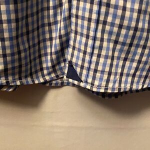 Blue white plaid button down up front collar collared shirt work casual untucked Untuck long sleeve untuck it